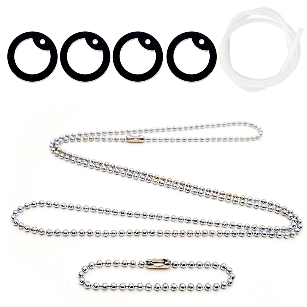 商品にはブラックサイレンサー4個とステンレススチールチェーンセット1個(27インチ長チェーン1本と4.5インチ短チェーン1本)25インチチューブセットが付属します。